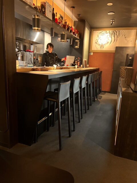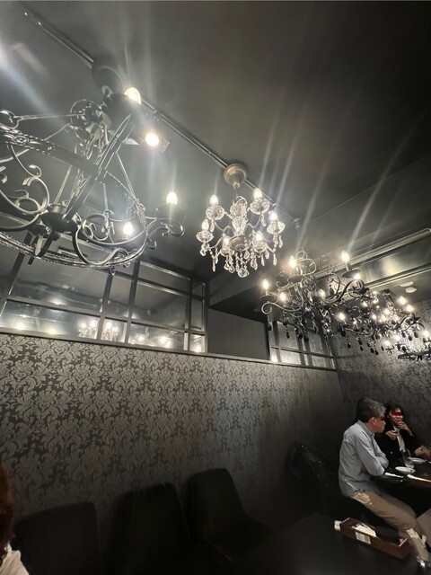 1階は窓側にテーブル席が一卓とライブ感が味わえるオープンキッチンのカウンター席があり、2階フロアは煌びやかなシャンデリアが並ぶラグジュアリーな空間で半個室もあります♡