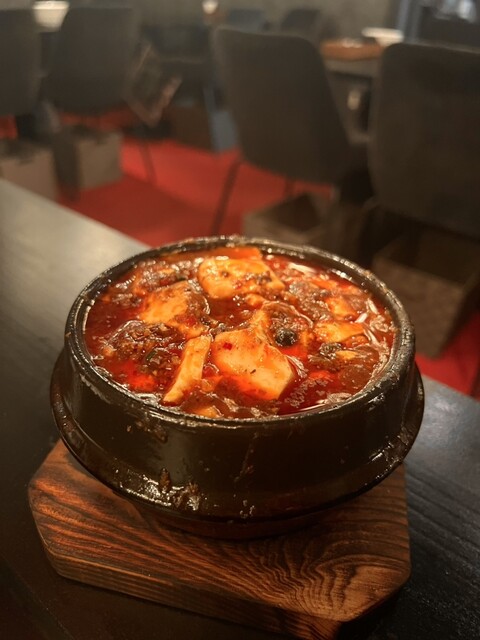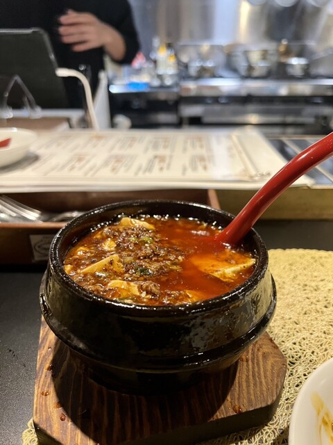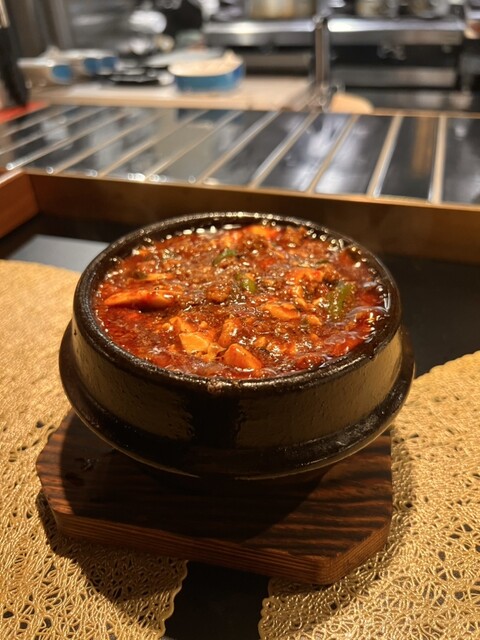 土鍋でグツグツと煮えたぎる熱々の麻婆豆腐!