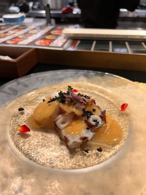 黒オリーブとトマトを使ったガスパチョソースでいただくぷりぷりの水タコ♡♡
