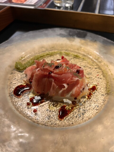 塩気のある生ハム&ミルクの甘みが濃い弾力あるモッツァレラチーズに自家製ジェノベーゼソースを絡めていただきます♪