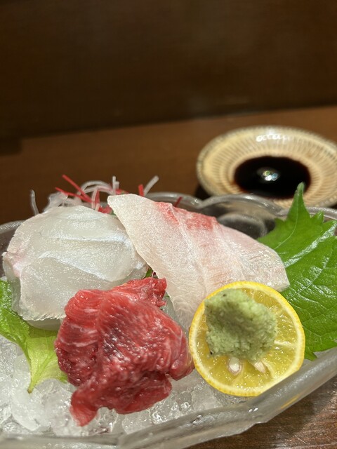 刺し盛り3品 (まぐろ頬肉、白身2種)