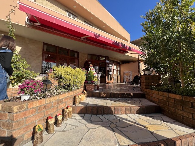 駐車場もしっかり確保されていて、エントランスにはテラス席まで用意されていました!