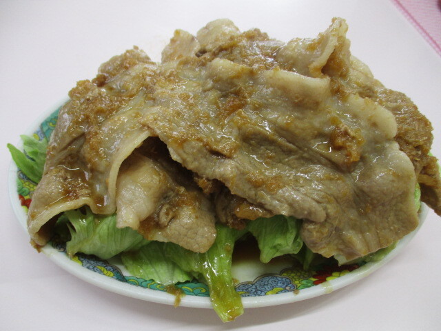 お肉は薄めの豚ロースでしたが、何と言ってもタレの味付けが絶妙で、しっかり生姜の味が効いた