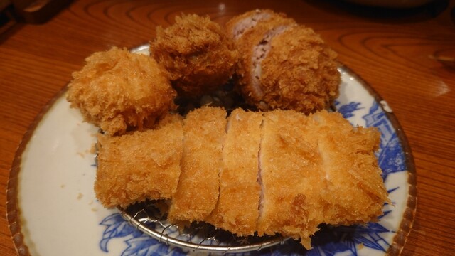 1つは、新丸定食(銘柄豚ロースかつ100g、豚手ごねメンチカツ、牡蠣フライ、カニクリームコロッケ)3,400円、もう1つは松盛り定食(銘柄豚ヒレかつ100g、海老かつ、牡蠣フライ、カニクリームコロッケ)3600円。