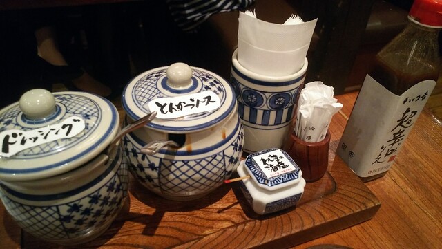 まず、キャベツと専用ドレッシングが提供される。このキャベツがおかわり自由で、ドレッシングをかけ食べるが、とてもさっぱり食べやすく、1杯目を完食、早速おかわり。