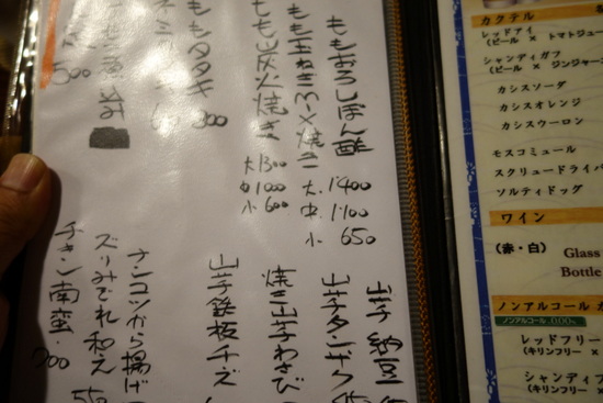 助八 メニューです。串のセットはありませんか? と聞くと、何本か言ってくれたら、焼きますよ。。。との事でしたので4本注文しました。