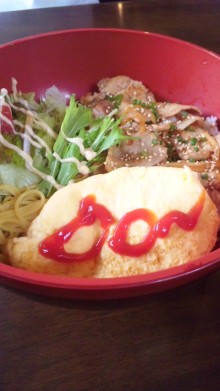 オムレツピリ辛焼肉丼