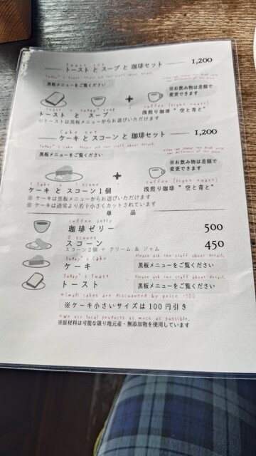 コーヒーとケーキ、スコーンのセットとコーヒーとスープ、トーストのセットを注文。