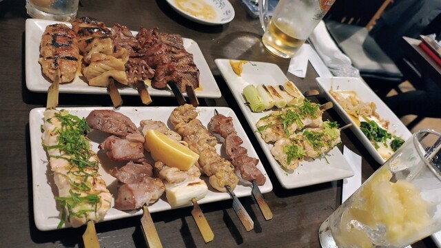 家族5人で往訪。焼き鳥10本盛り合わせと、各自、好みの焼き鳥をオーダー。ねぎま、つくねも美味いし、内臓系も美味い。ボリュームあって一串200円くらいで、コスパ高い。