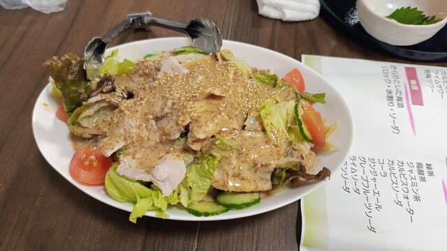 今日のサラダは、冷しゃぶサラダ。コースの一品としては、ボリュームたっぷり。癖強の先付をリセットするのにちょうどいい。