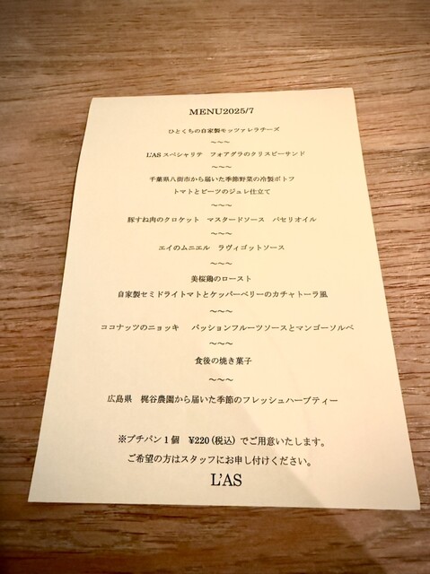 お料理はコース一択。南青山という立地やボリューム、クオリティ、全てを考慮しても7,000円はお手頃すぎます。