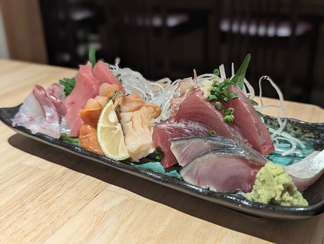 ・お刺身盛り合わせ(ハタ、マグロ中トロ、赤貝、つぶ貝、鰹、しめ鯖)