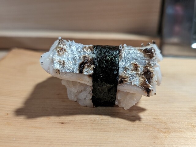 残した白子とシャリを混ぜ合わせて、更にホイル焼きにして出してくれました。ドリアとかリゾットの様な感じになり、シャリの酸味と白子のまろやかな旨味がとても合って美味しかった