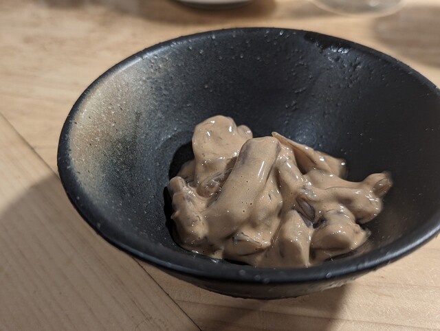 白子をホイル焼きにしてあります。滑らかでクリーミーです。1つだけ食べたら戻してと言われました。