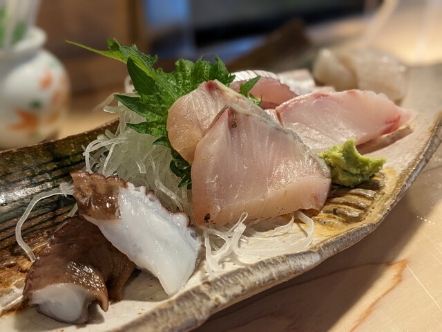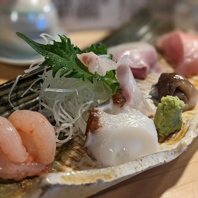 ・刺し身(甘海老、タコ、クエ、生トリ貝、石鯛、金目鯛)