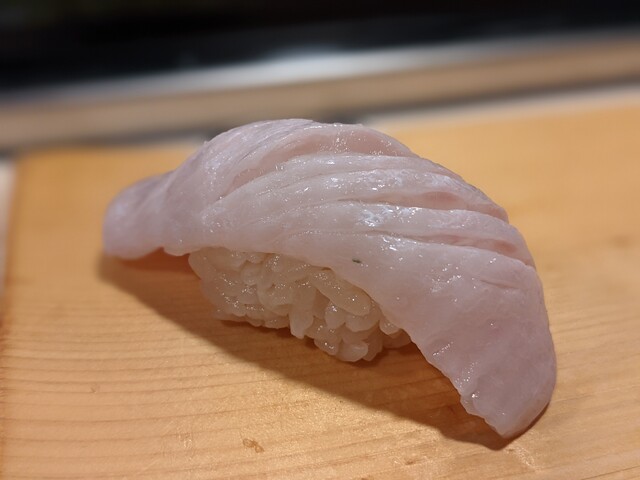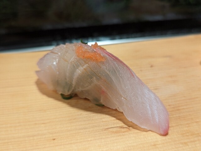 自分の大好きな春子鯛は酢〆ではなく塩〆です。皮が柔らかくてシャリとのバランスがとても良かったです