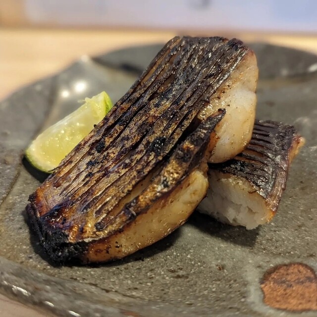 焼き魚に酢をかけて食べる食べ方は、天史朗寿司さん以外では食べたことがありません。