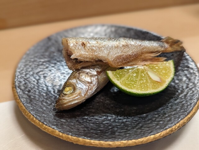 メヒカリは焼いたあとに中骨を抜いて提供されます。ひと手間をかけて食べやすくしているそうです。当たり前ですが無い方が食べやすいと思いました。