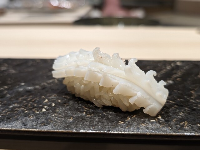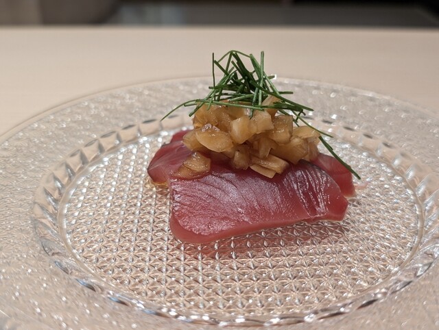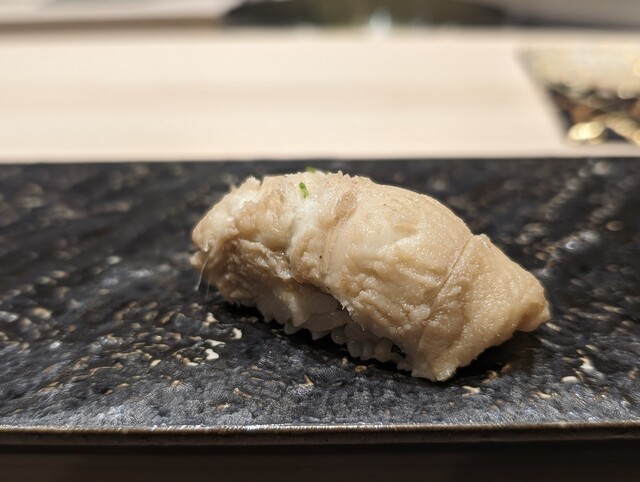アイナメは1週間熟成してあり、旨みが強くねっとりとした食感がとても良かった。メイチダイは本日締めたものでプリンプリンの食感がアイナメと真逆で面白かった
