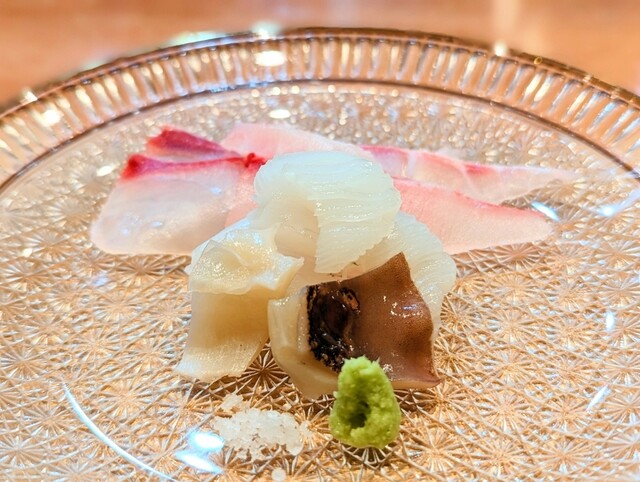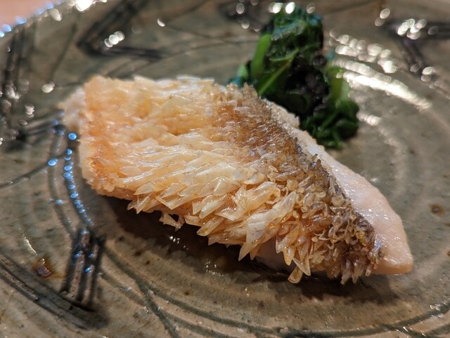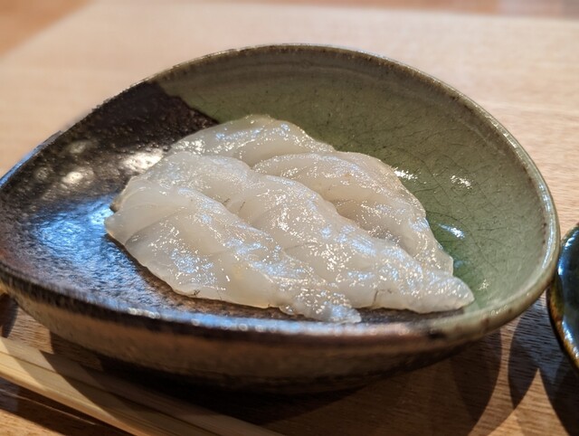 石鯛の腹身は身質がしっかりしているので、コリコリとした食感のイメージがありましたが、熟成しているせいか、個体のせいか、旨みが強く、ねっとりとしてとろける身質でした。