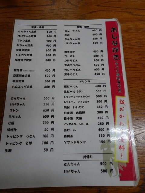 私も相方も、「とんちゃんのほうが美味しい(けいちゃんのほうがあっさりしている)」との結果でした。