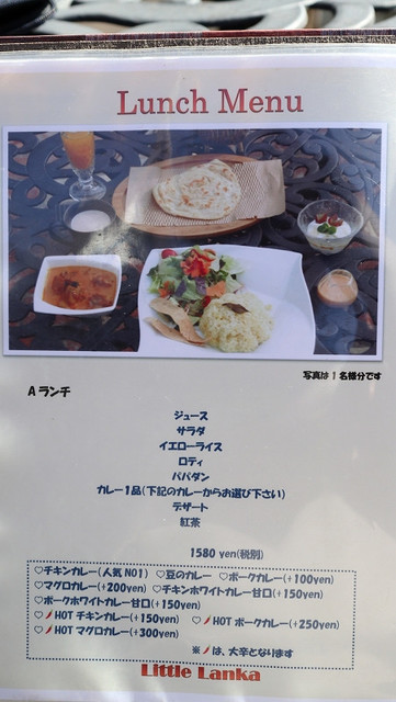 それとメニューが少なっているのはシェフが1人スリランカに帰ったらしく、絞っているみたい。