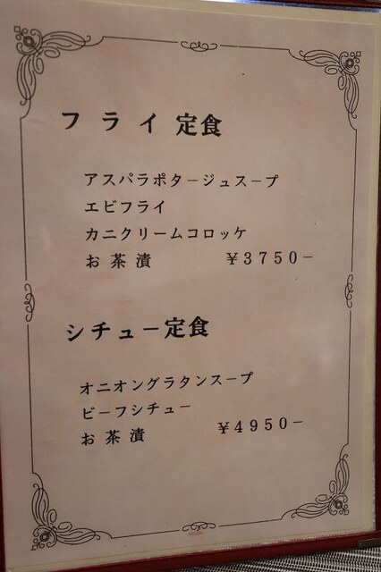 サラダもポテサラも美味いし、最初はレモンだけなどで食べてたエビフライをタルタルウスターソースなどで味を濃厚にして米と一緒に食ってからの締めにお茶漬けパターンが口も胃も洗ってくれて揚げ物に濃厚なスープを食べた後とは思えない食後。お茶漬けで締めているのでコーヒーも甘い物も不要で食事が完成されます