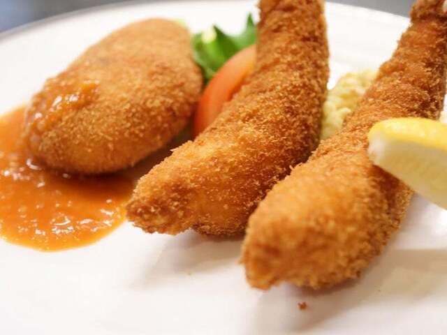 相変わらず素晴らしいです。エビフライで一番美味しいと思う。下味の付き方、海老のブリっと感、衣の薄さにパン粉の細かさ全てが素晴らしい。見た目も美しいしクリームコロッケも滑らかでトマトソースが良く合うわ