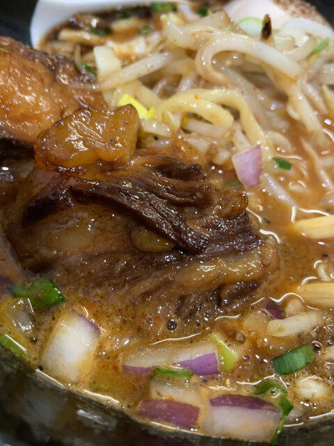 独特なスパイシーなスープと菅野製麺所さん謹製中太縮れ麺が合わさり旨い。
