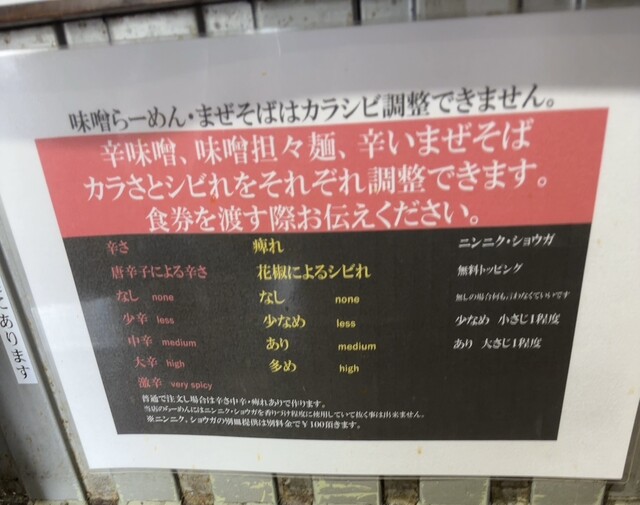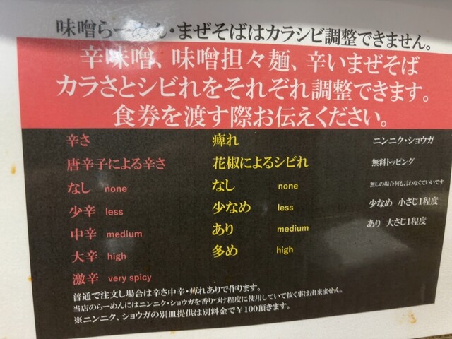 好みを言えるのは辛味噌、味噌担々麺、辛いまぜそばのみですのでお気をつけて。