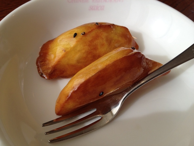 別名・大学芋ですが熱々ながら飴が固まり上品な一品で美味しいですよ。