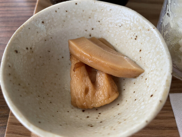 今朝は朝3時に身体の痛みで目が覚めた。やはりワクチンの副作用か?今朝は身体の節々とワクチン注射した部分が押さえると痛い。余り無理は禁物だがとりあえずモーニングでも行こうと車に乗り岐阜方面に。半田を3時半に出発して下道を80キロ走り7時を少し回り一日中モーニングの店Fに到着。すると営業時間が前は朝7時半スタートだったが現在は朝8時からの営業に変わってます。アイスカフェ・オ・レ450円にモーニングを付けました。トーストはジャムでお願いしました。Fのモーニングは日替わりで提供されます。過去2回訪問して今回が3回目だが内容が凄い。ツナ入りクリームパスタにカレーライスに野菜サラダにジャムトーストにコロッケに茶碗蒸しに茄子煮にカットフルーツ(梨に桃)付き。アイスカフェ・オ・レはまろやかな味わいで美味しい!野菜サラダは胡麻ドレッシングがかかりシャキッとして良い。ツナ入りクリームパスタは自家製で少し塩分強めながら中々の味付け。カレーライスも自家製でマイルドな味わい。ジャムトーストは厚みが結構あり表面はカリッと中はもっちりして旨い。茄子煮が冷製で旨い。コロッケだけは冷食だがあくまでもサービスなので。茶碗蒸しが具沢山で出汁が良く効いて旨い。デザートの梨に桃が季節柄ホンノ口直しだが甘くて旨い。