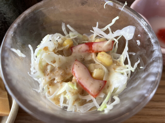 野菜サラダに茄子煮に茶碗蒸し。茶碗蒸しが絶品!