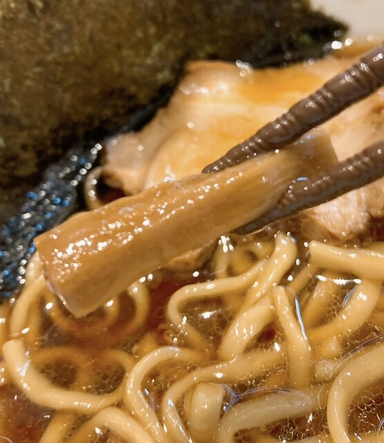 コリコリ食感のメンマとフレッシュなほうれん草は共に口直しにいい。