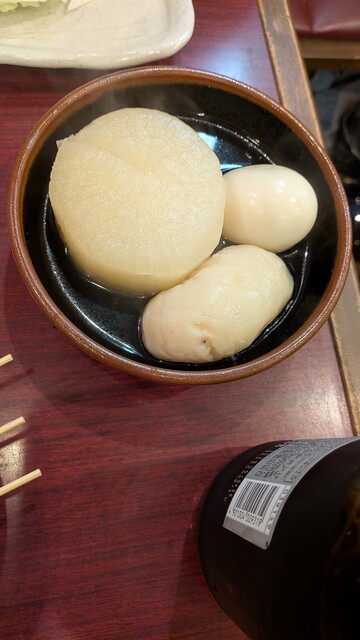 名物の土手焼きと、おでんで大根・ジャガイモ・玉子注文しました