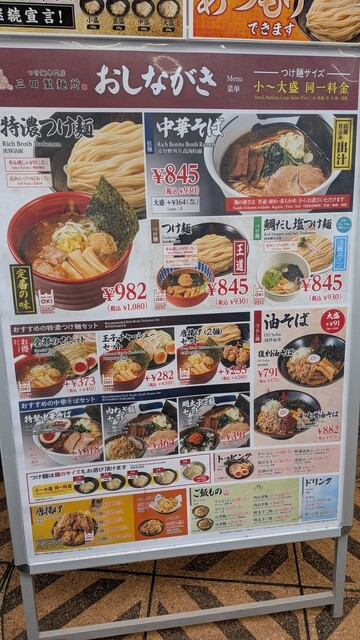入り口に置いてある券売機で、私は鯛だしつけ麺麺400g、相方はつけ麺麺300gの食券購入(どちらも930円)