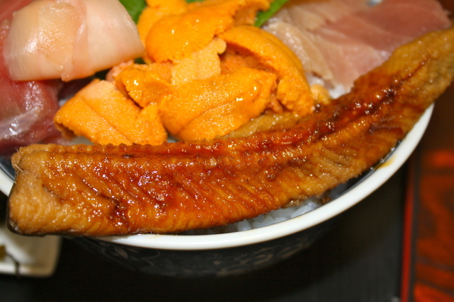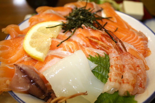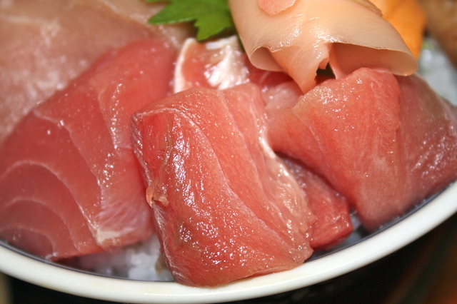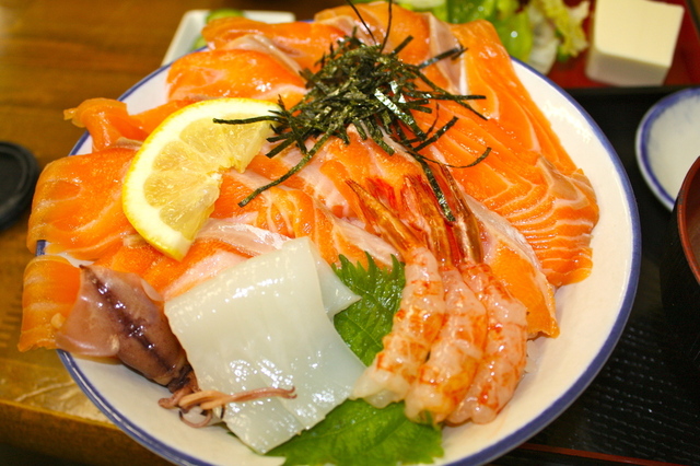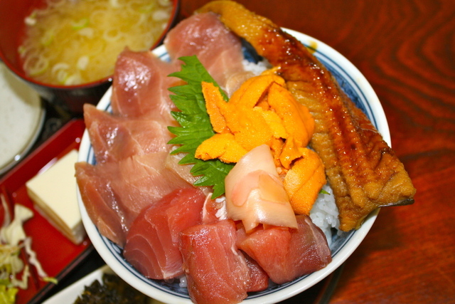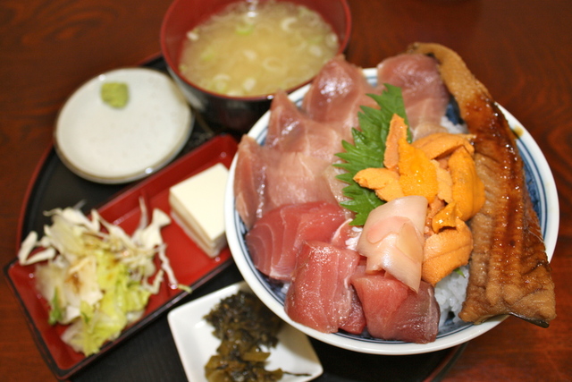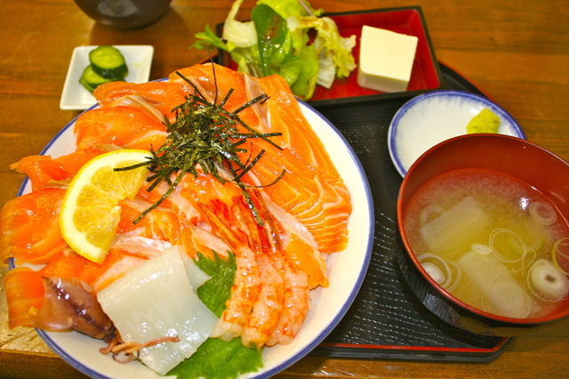 三色丼 味噌汁,ミニサラダ、小皿付き