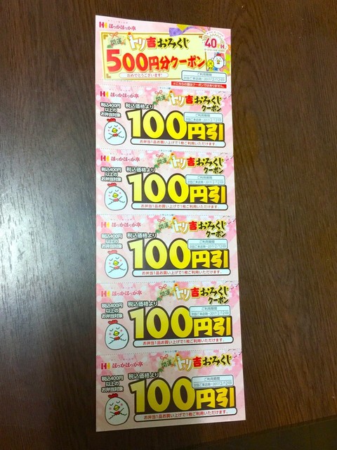 ほっかほっか亭で天丼買ってクジを引いたら、大当たり。 (2017/01/07)