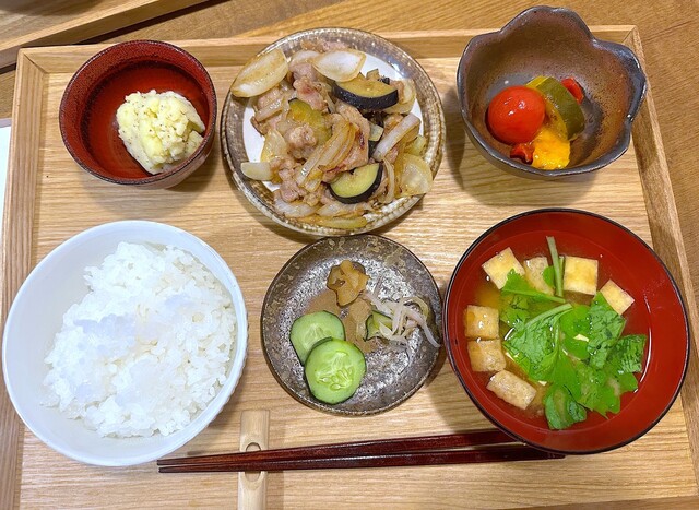 自然農法で栽培した野菜を中心とした手づくり料理。