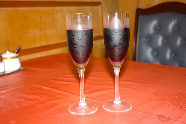 最初に勝沼産グレープ果汁100%ジュースが来ました