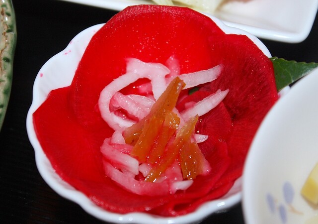 赤かぶも味噌をつけて美味しく、わらび煮物も美味しく、トマトのチーズ乗せも美味しく