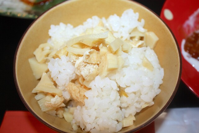 ご飯は旬の採れたての柔らかいタケノコご飯で素材の味が生かされていて何杯でも行ける美味しさです。