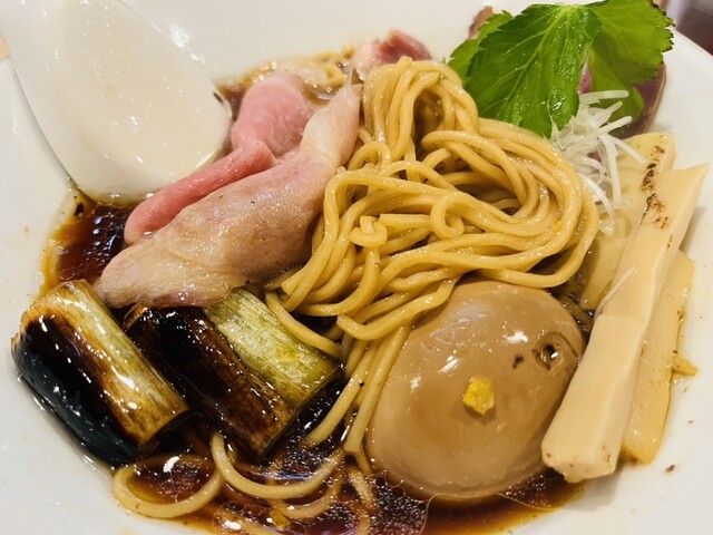 自分へのご褒美ということで、鴨肉と味玉をプラス。そしてこれが百名店かと、心から感動した味でした。