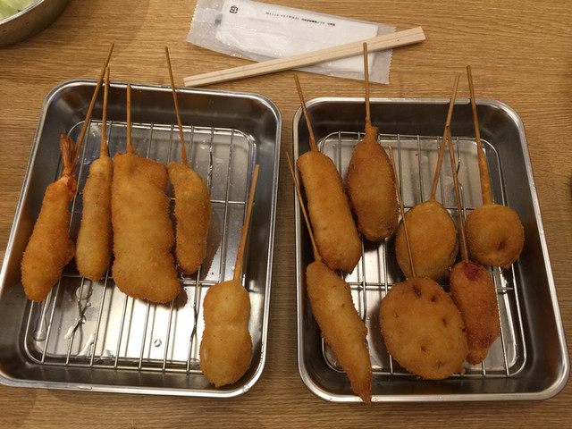 揚げ上がった串かつは、ミニ電車?(どこかの回転寿しみたいな)で運ばれてくる。