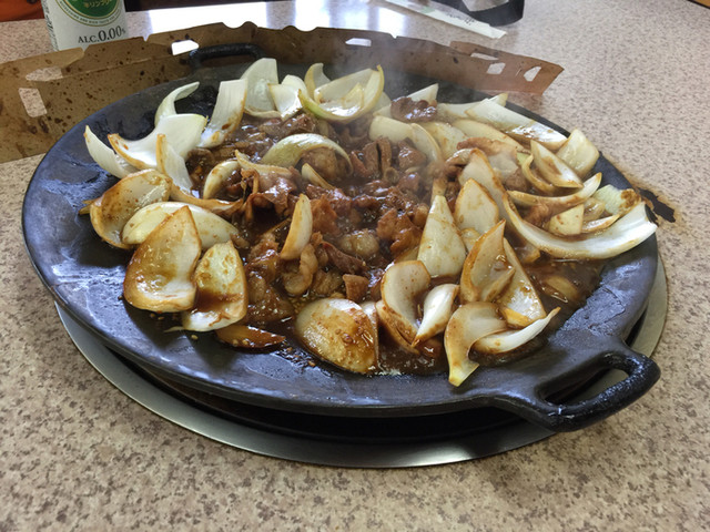 鉄板と缶ビール!