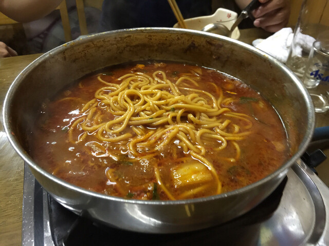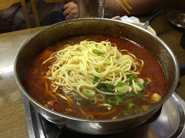 ぺろりと鍋をたいらげて、雑炊にするか悩んだけど中華玉の投入!