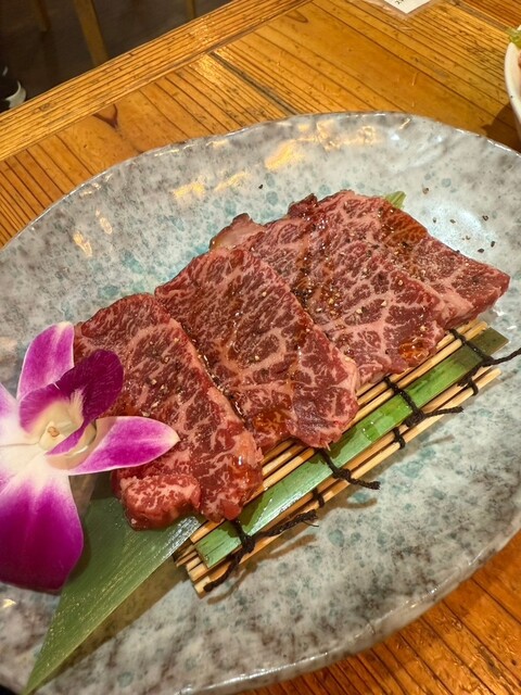 お肉は、色々な部位を少しずつ楽しめる「キョロちゃん盛り」をオーダーしました。中でも、ハラミのジューシーな肉汁が口の中に広がる瞬間がたまりません✨