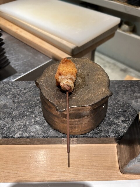 コースを予約してくれていたので、串揚げだけでなく色々なものを楽しめたのだが、中でも野菜スティックが良かった。野菜そのものも、添えられたディップも美味しく、コースにしてくれてありがとうございますと感謝。