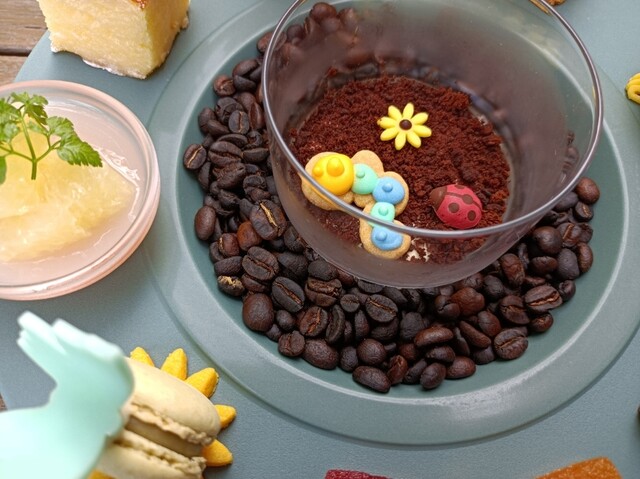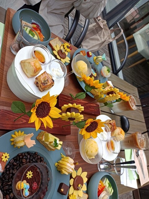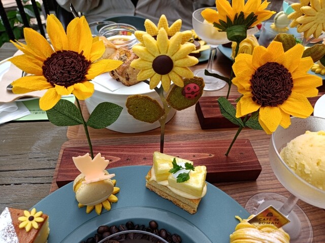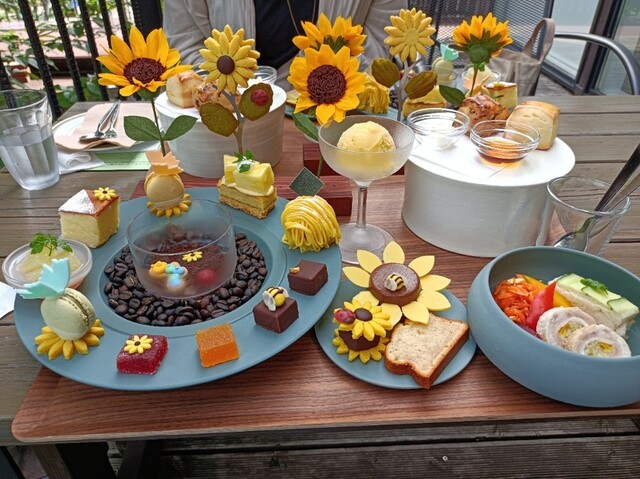 2022年6月再訪。今回のテーマは向日葵と昆虫採集〜!昆虫ってぇ(;_;)って思いましたが、やっぱり予約して行っちゃいますよねぇ。しかも今回はテラス席お願いします!さすが夏です!虫さん達も甘いものに寄るよね〜!アリがなかなか来ます。わらじさんもなかなか足元に来てます。食べるのに集中出来ないーって思いながらも、いやいや全然食べれる!かわいいレディバーグ!マンゴーのチョコモンブランは見た目よりもずっと濃厚でなかなかな重量級です。