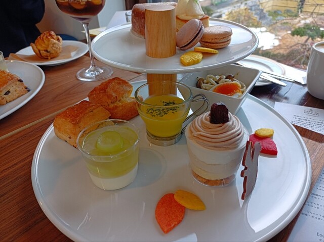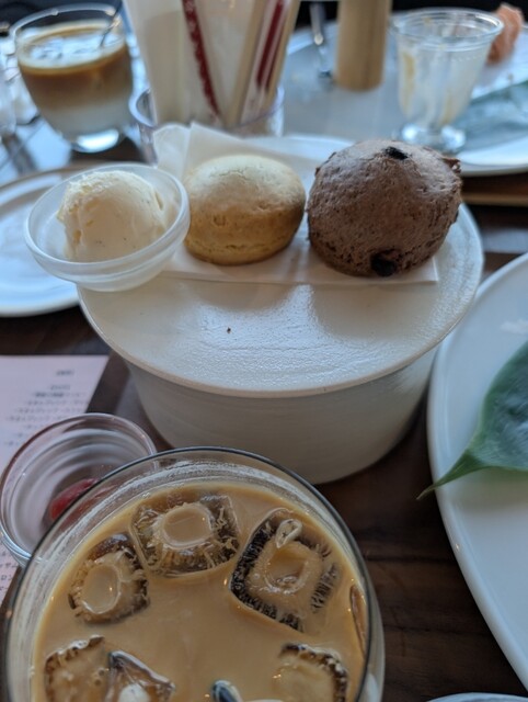 さつまいものレモン煮はあんまり味がしなくて、味覚オンチには難しかったです。ピスタチオのボンボンショコラも甘すぎなくて好きな味です。イングリッシュスコーンもサクサクもっちり。ラムレーズンが美味しいです。